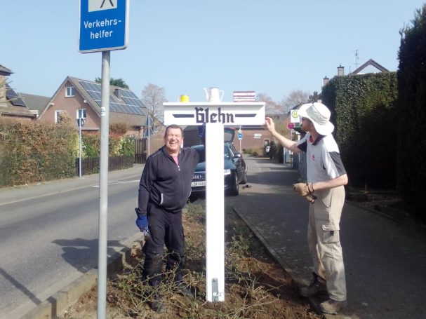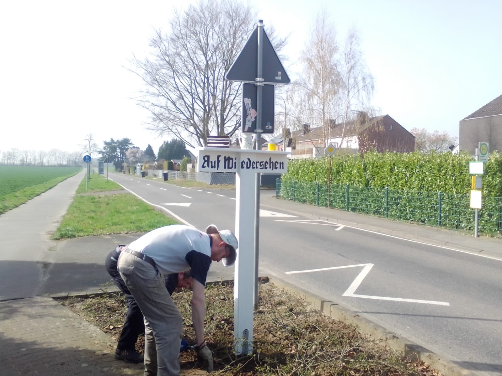 Wir von den Heimatfreunden konnten – in Absprache mit der Stadt Korschenbroich – unser historisches Ortsschild wieder aufstellen. Gestern wurde das Schild mit tatkräftiger Unterstützung von Herrn Windt montiert.